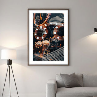 Signs and reflections overlap — messages half-seen, half-lost, in the constant noise of the city.